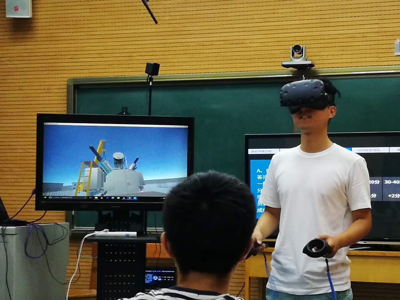 电力系郭靖老师的项目是信息化课堂教学大赛,这个赛项需要设计一堂时长为35到45分钟,以使用信息化手段进行现场教学作为课程设计亮点的教学视频,教学过程要有学生出镜。她和她的团队大胆地将最新的VR科技带进了她的《变压器的基本结构》课堂里,并且成功地使用小组抢答的方法解决了VR在教学过程中存在的除设备使用者以外其他学生参与感不强的致命问题,引来无数教师围观称奇。